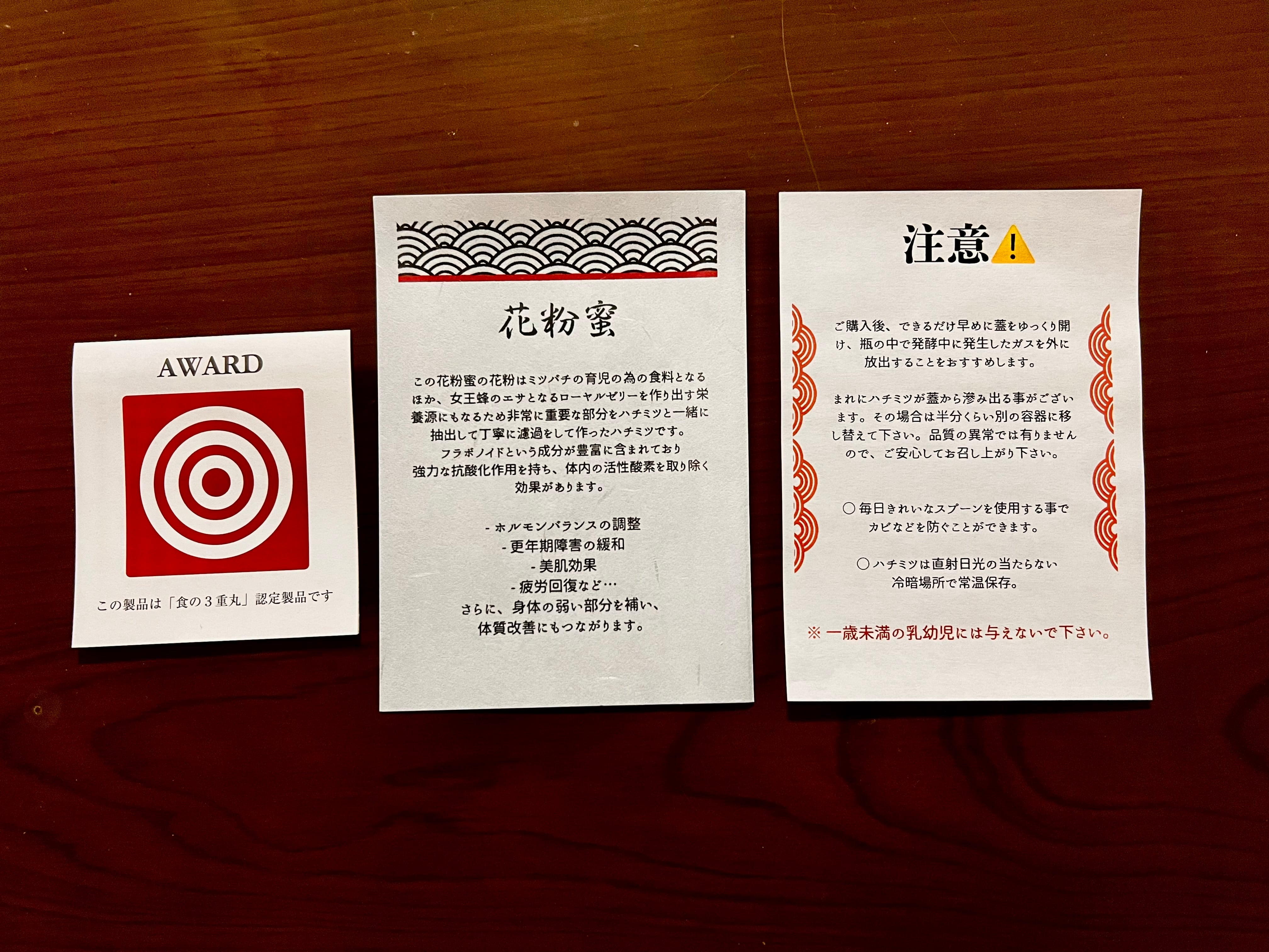 そんな栄養満点のペルガの入った花粉層の部分と一緒に抽出して、丁寧に濾過をして作られたのが「花粉蜜」です。 花粉蜜はペルガの栄養素を手軽に摂り入れることができるので毎日の健康維持のサポートをしてくれるでしよー。