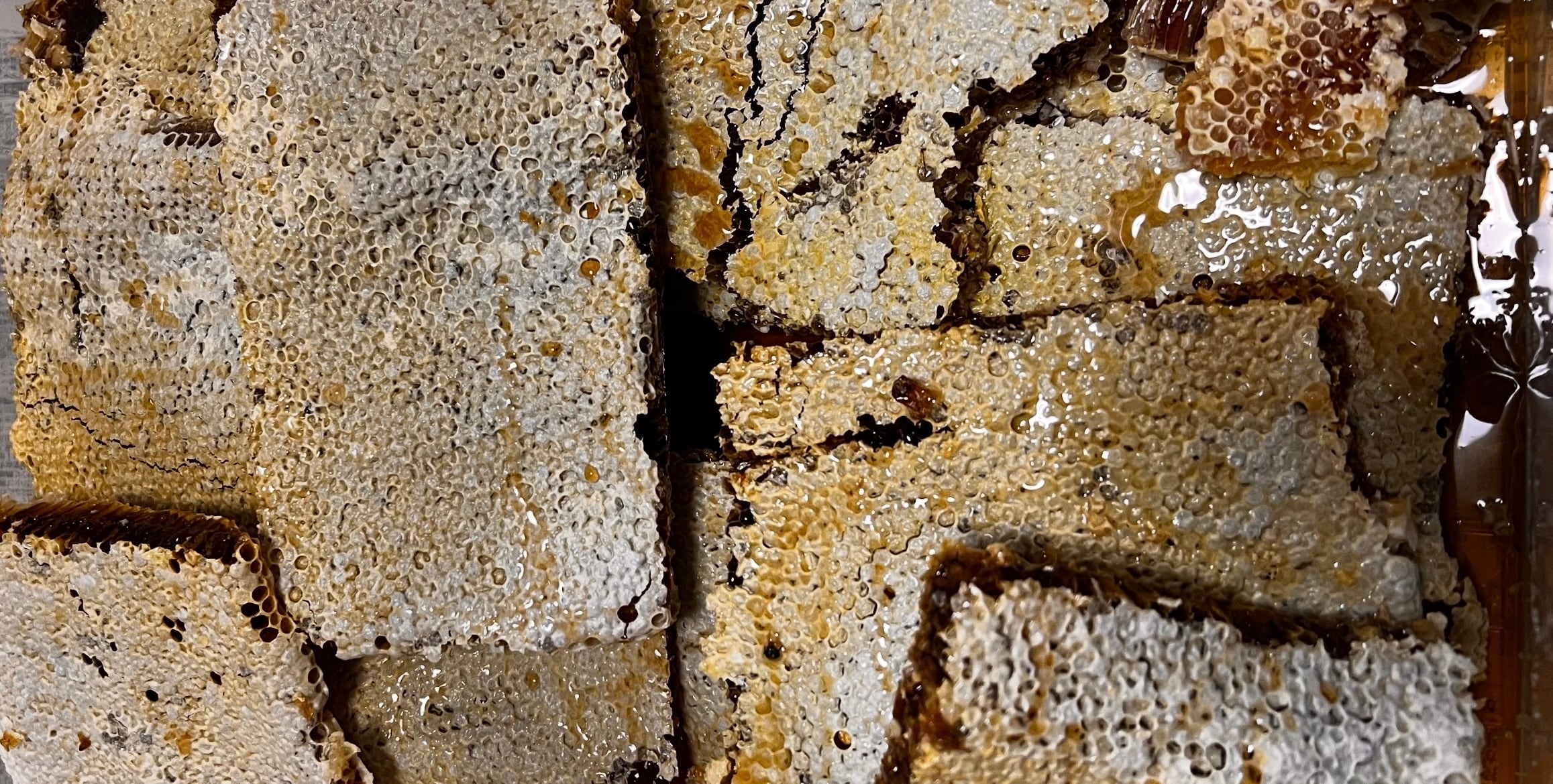 どうやって作られるかというとミツバチが集めて来た花の蜜と花粉(ビーポーレン)をミツバチが混ぜ合わせて正六角形の巣の中に保存します。そして蜜蝋で蓋をして密封すると、その中で花粉が発酵し、栄養たっぷりの発酵食品「ペルガ」が完成します。このペルガはミツバチの育児の為の餌になります。